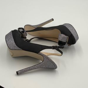 For sale is a beautiful pair of Enzo Angiolini Stilettos. They are black with silver glitter and are adorned with a bow. 6” heels are just too much for me
