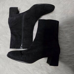 Enzo Angiolini Black Suede Ankle Boots, Block Heel, Rounded Toe, 9.5