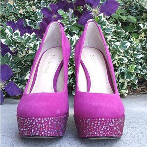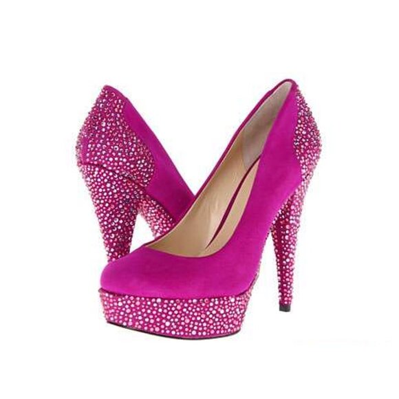 Enzo Angiolini Dark Pink Fuchsia Platform High Stiletto Heels with Rhinestones