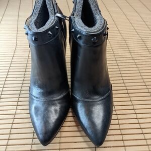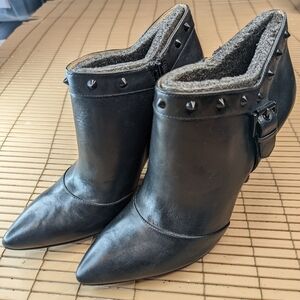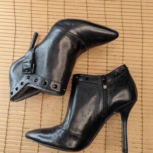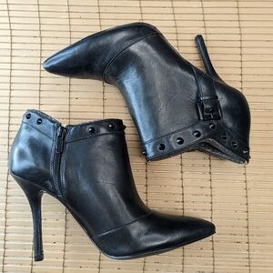 Enzo Angiolini "EAPresley" black leather side zip Ankle Boots. Studded collar.