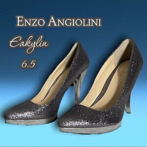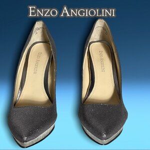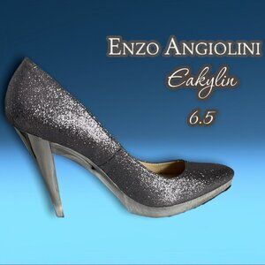 Enzo Angiolini Eakylin Sparkling Metallic Silver Platform Heels Size 6.5