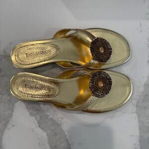 Enzo Angiolini Eanetta Sandals Women's 8 Stacked Wedge Heel Jeweled Beaded Gold