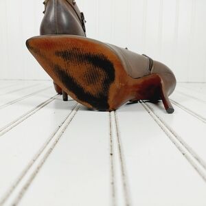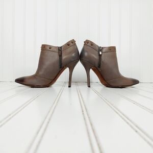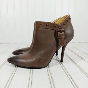 Enzo Angiolini Eapresly Brown Leather Stiletto Heels Studs Ankle Bootie E398