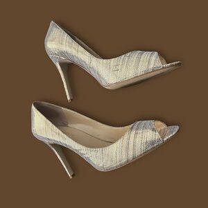 Enzo Angiolini Gold Metallic Peep Open Toe Heel Eve Party Shoe Stiletto SZ 11M