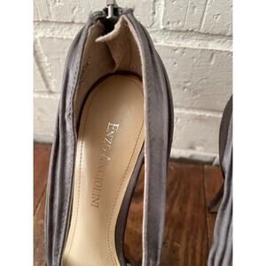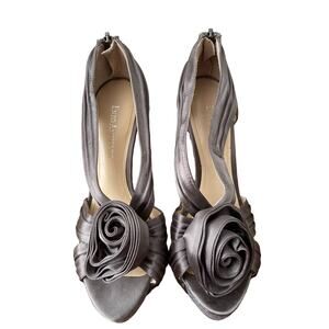 Enzo Angiolini Gray Satin Silver Zip Pumps with Rosebud Peep Toe Size 6.5M