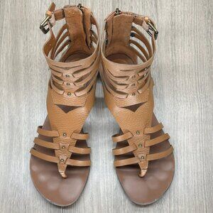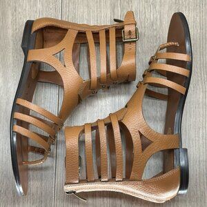 Enzo Angiolini Makalya Gladiator Sandals Women Sz 6M Flat Leather Zip Back Brown