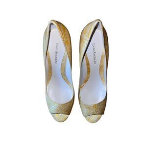 Enzo Angiolini Maylie Medium Beige Patent Leather Peep Toe Heel Womens Sz 10 NEW
