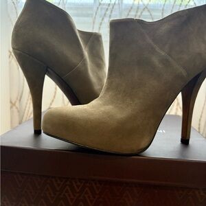 Enzo Angiolini Taupe Suede Ankle Booties Women’s Size 8M High Heel Zip Booties- Olive Green excellent condition