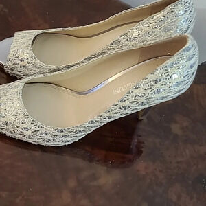 4 Inch Silver heels. Open toed. Worn Once Smoke and Pet free home