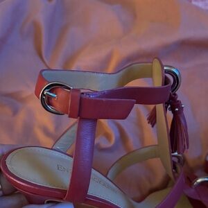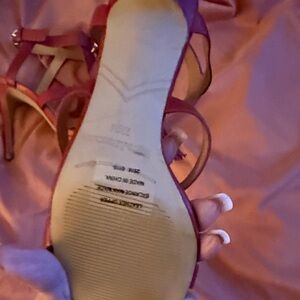 Elegant pink heels with stylish straps. Features tassel accents and metallic rings. Perfect for a chic look. New with out tags
