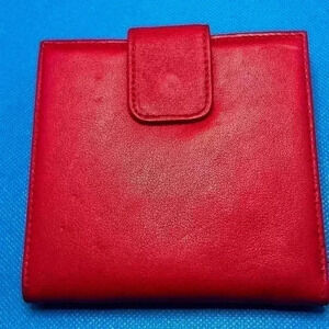 Enzo Angiolini Red Leather Wallet & Change Purse With Chrome Magnetic Snaps