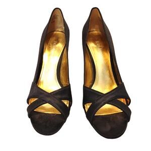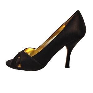 Enzo Angiolini Satin Peep Toe Pumps Crisscross Strap Leather Sole Womens 6.5M
