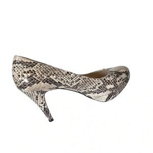 ENZO ANGIOLINI Snakeskin Stiletto Platform Heels, 10.5M in grey and cream. These heels / pumps will pop when worn with a solid colored outfit. Love the very realistic snake pattern. The platform helps reduce the height of the heel, so wear with confidence! Excellent preowned condition--Like New! - Heel measures approximately 4” Platform measures approximately 0.5" Memory foam.
