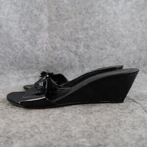 Used Enzo Angiolini Shoes Womens 7.5 Sandals Wedge Slip On Fashion Classic Black Bow