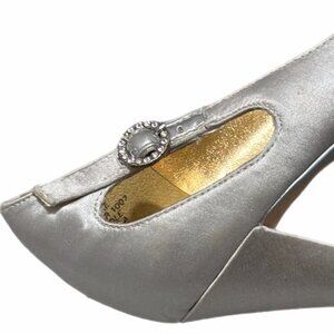 Enzo Angiolini Shoes Womens 8.5M Silver Satin Pump Buckle Bridal Gala Cocktail