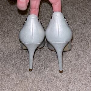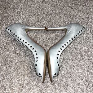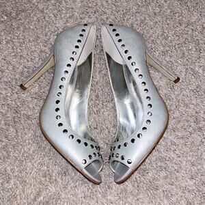 Enzo Angiolini Silver Studded Open Toe Stilettos