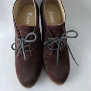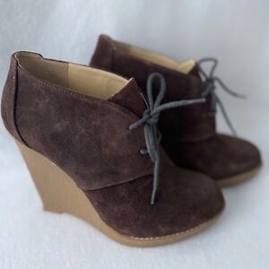 Enzo Angiolini Brown Suede Size 7 1/2M Wedge Ankle Bootie.