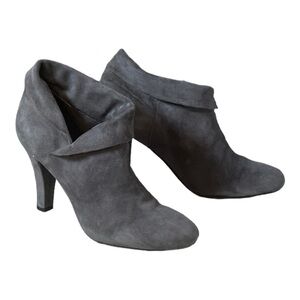 Enzo Angiolini Suede Slouchy Foldover Ankle Booties Gray Heeled Boots Size 10