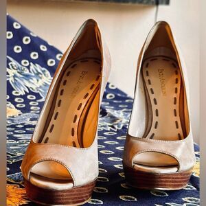 Enzo Angiolini Tan Heels with Peep-Toe Design