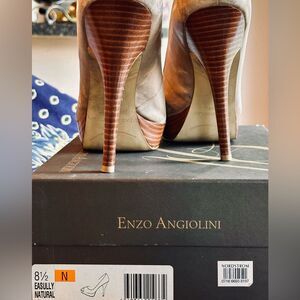 Enzo Angiolini Tan Heels with Peep-Toe Design