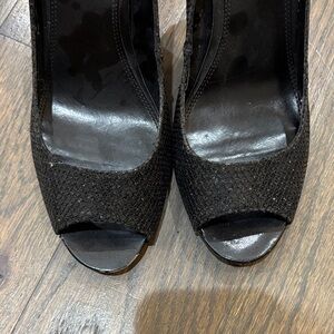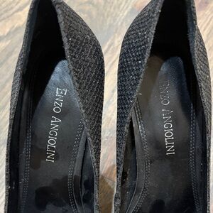 Enzo Angiolini Textured Black Peep-Toe Heels, Size 7.5