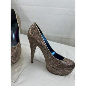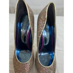 Enzo Angiolini Womens Gold Heels Shoes Size 7.5M Multicolor Glittered Platform