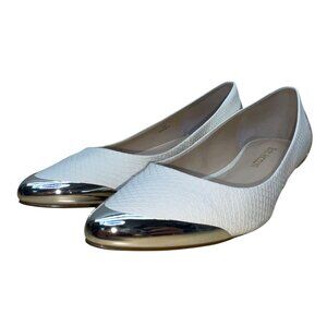 Enzo Angiolini Womens White Textured Pattern Gold-Tipped Danville Flats Sz 6.5M