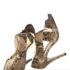 Enzo Angiolini brown faux snakeprint crisscross open toe back zip stilettos Size 10 new
