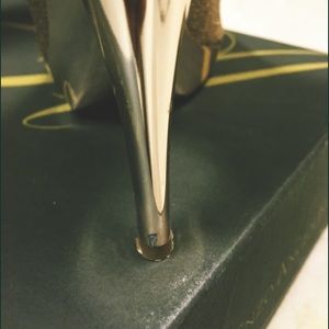 Great for a night out! 4.5" heel, fits like a size 6. Worn once. In great condition, but there's a scratch at the bottom of one heel (picture above).