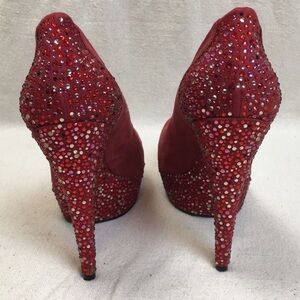 Red suede with Rhinestone detail on platform/heel/ bottom of shoe-size 9- gently worn