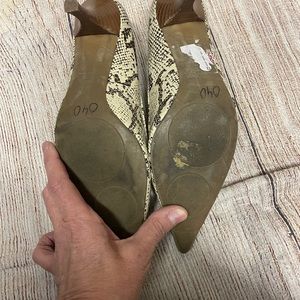 Enzo Angiolini snakeskin, print cream brown heeled pointy toe leather shoes size 7.5