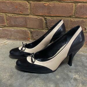Enzo Angiolini Ea Heddie Black & Cream Leather Pumps Size 8