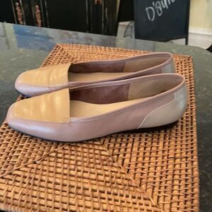 Very good pre-warn condition butter soft Leather Taupe Tan Liberty Loafers. No “flaws” but Some signs of wear.