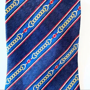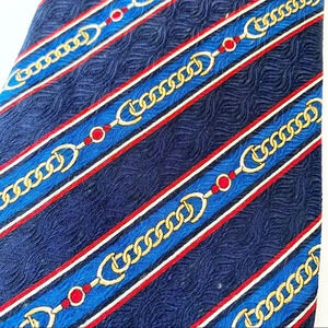Enzo Ballagio silk tie from the World Polo Championships. Blue silk with chain print. Preowned.