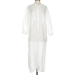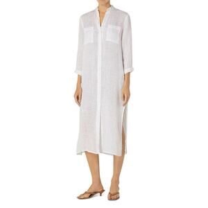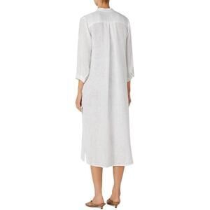 Enzo Costa 100% White Linen Collarless Bracelet Length Sleeve Shirt Dress 3 L