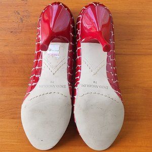 Enzo Open Toe Red Patent Leather Stiletto Heels