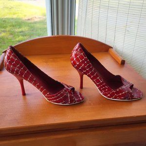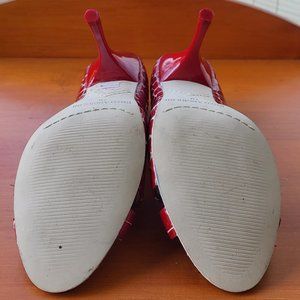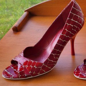 EnzoAngiolini Eamagnify peep toe red and white gloss leather upper pumps. Worn once. See pics to see almost clean bottoms, small scuff on top and heel height. Size 7M.