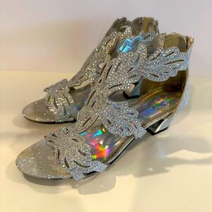 Enzo Romeo Silver Sparkly Gladiator Low Heels, Size 8.5