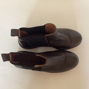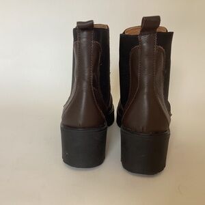 Excellent almost new condition. Brown leather uppers, chunky 2” heels. Size 6.5