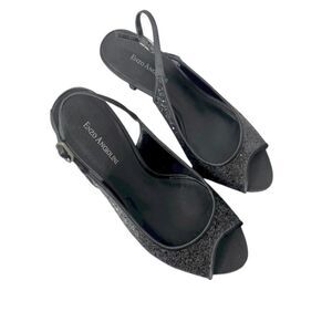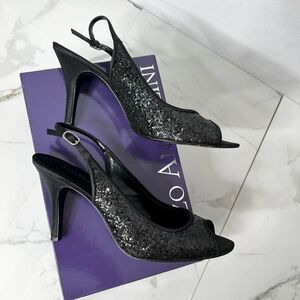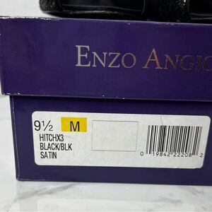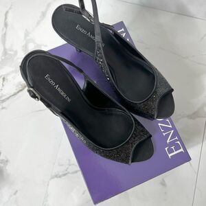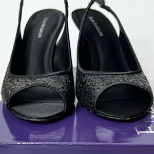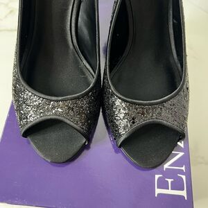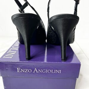 Enzo Angiolini Hitch X3 Black Sequin Shiny Satin Ankle Buckle Peep Toe Heels