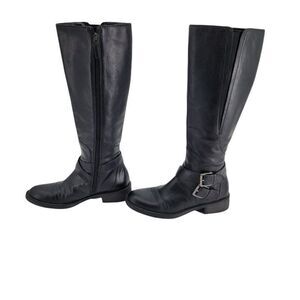 Enzo Angiolini Leather Boots Tall Equestrian Riding Easporty Zip Up Black Sz 7M