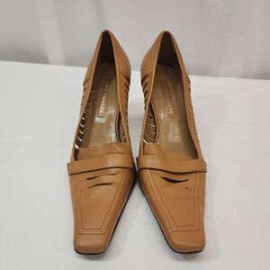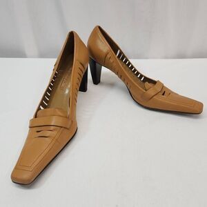 Enzo Angiolini Size 8.5 Tan Leather Square Toe Pump Heels L