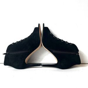 Enzo Angiolini Women's Size 7.5 M Black Suede Victorian Peep Toe Stiletto Ankle Heels Side Zip Closure