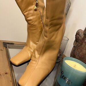Enzo Anglioni Barrister Camel Leather square toe Boot. Size 7M.