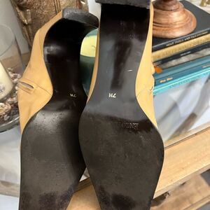 Heel size 3.5. Great condition. Some light creasing but tons of life left. A classic style. Beautiful gold accent zipper.