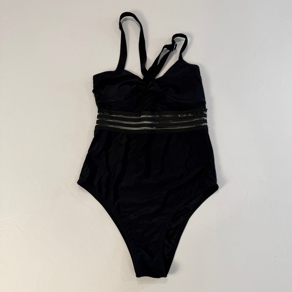 Eomenie Black One Piece Swimsuit Twisted Bust Sheer Panel Detail Size S