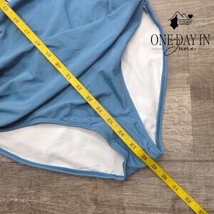 A most becoming one-piece in the most agreeable shade of blue, featuring a delightfully modern cross-front design with artful cut-out details that would surely turn heads at any seaside gathering. The clever construction of polyester and spandex ensures both comfort and a most flattering silhouette for the discerning lady. This charming piece arrives in pristine condition, ready to accompany you on your next aquatic adventure with all the confidence of a true heroine.