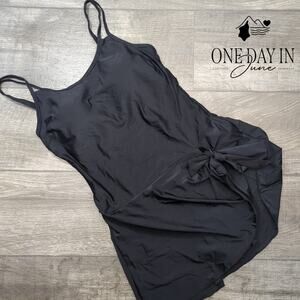 A magnificent black swimdress that captures the essence of poolside elegance with its flattering one-piece silhouette. Crafted from a luxurious blend of polyester and spandex, this piece moves like liquid shadow against sun-kissed skin. Brand new and waiting to accompany you on those languid summer afternoons where fashion meets the water's edge.