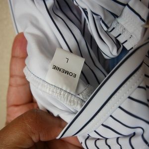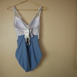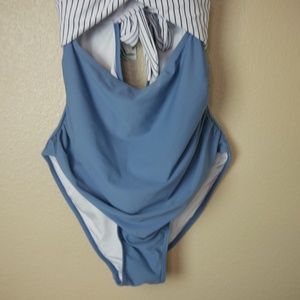 Eomenie Tummy Control Blue Striped Womens Large One Piece Sexy Cutout Swimsuit