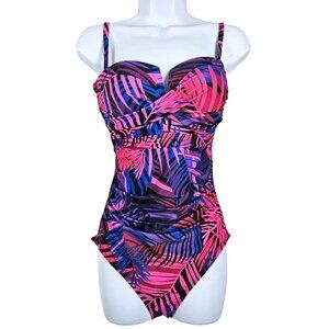 Eomenie Womens Med Push Up Wrap Tummy Control One-Piece Swimsuit Tropical Print